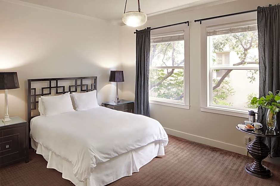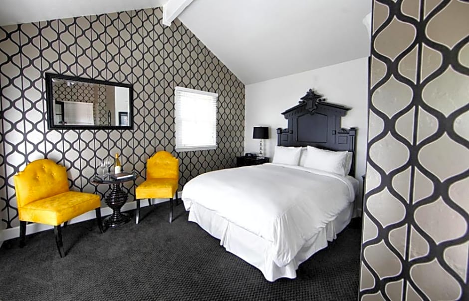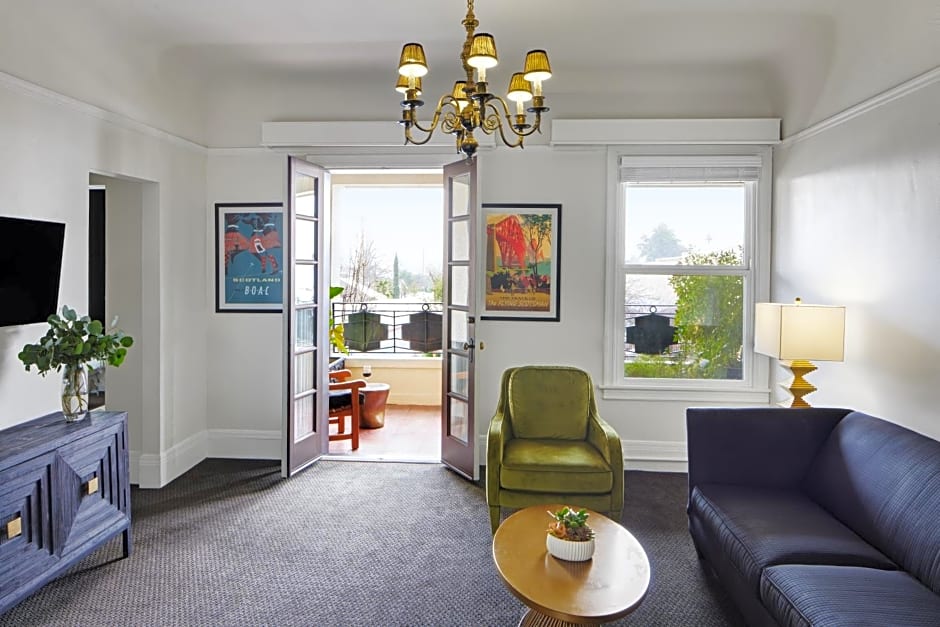 This suite features a shared balcony overlooking Main Street and include a separate seating area with flat-screen TV, compact fridge, a café espresso machine, microwave and counter with sink. The separate bedroom offers a flat-screen TV and private bathroom with claw foot bathtub.
